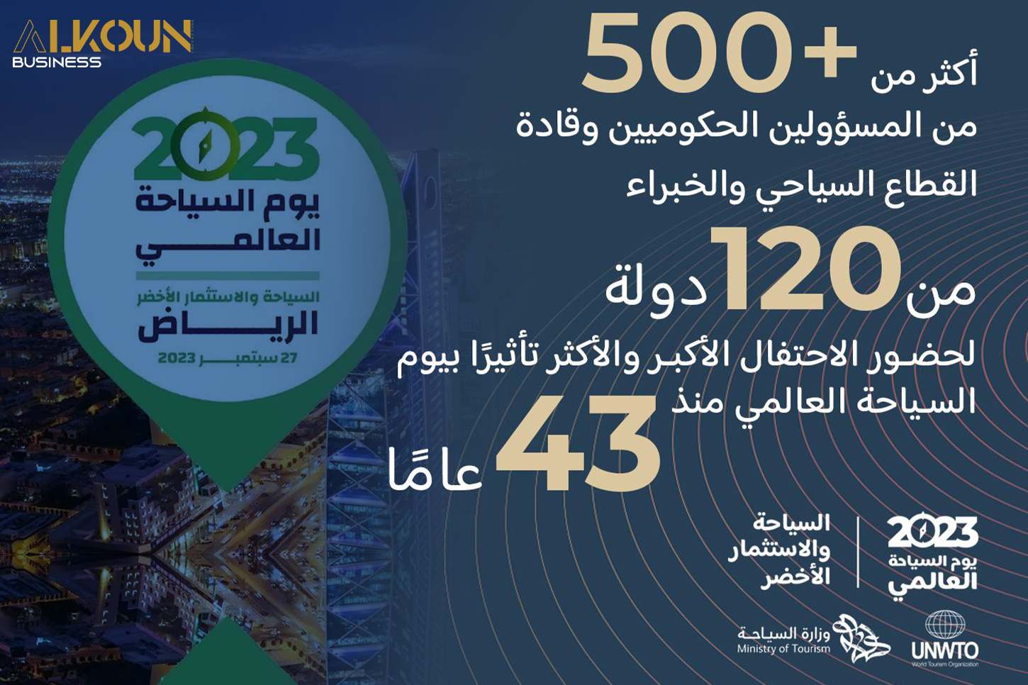 أعلنت اللجنة المنظمة للفعاليات المصاحبة ليوم السياحة العالمي الذي تستضيفه المملكة العربية السعودية للمرة الأولى في عاصمتها الرياض يومي 27-28 سبتمبر 2023 عن قائمة المتحدثين في الجلسات الحوارية المصاحبة ليوم السياحة العالمي، وذلك بحضور أكثر من 500 من القادة والخبراء والمسؤولين، من 120 دولة حول العالم، من أجل رسم الخطوط العريضة لنمو وازدهار القطاع السياحي العالمي، ويعكس هذا الحضور الملفت حجم المشاركة الاستثنائي في هذه المناسبة المهمة، والتي تعد الاحتفاء الأكبر بيوم السياحة العالمي منذ انطلاقتها قبل 43 عاماً.