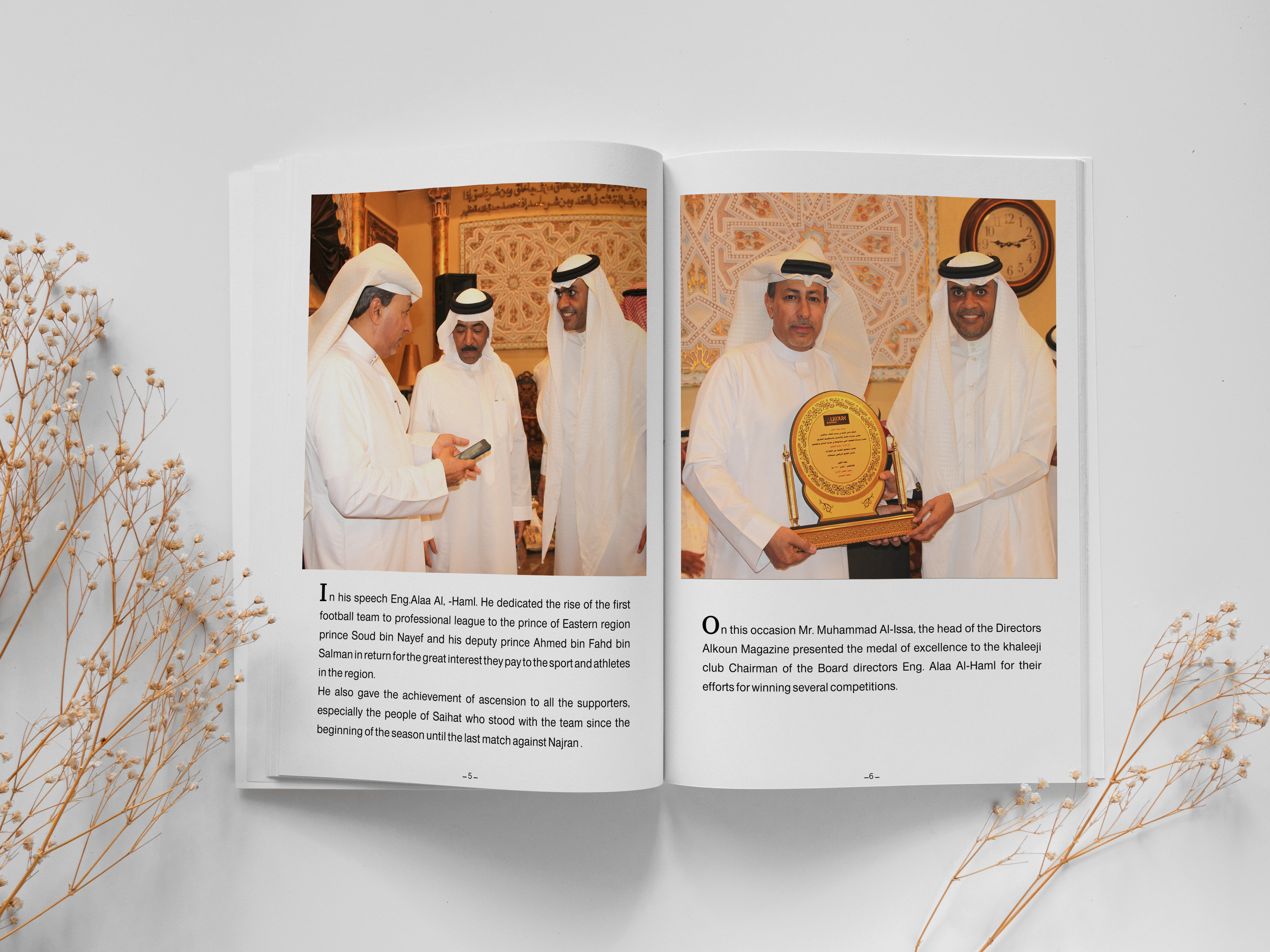 In his speech Eng.Alaa Al, -Haml. He dedicated the rise of the first football team to professional league to the prince of Eastern region prince Soud bin Nayef and his deputy prince Ahmed bin Fahd bin Salman in return for the great interest they pay to the sport and athletes in the region.